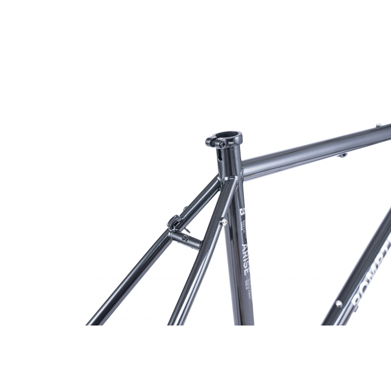 The Arise frameset is suitable for gravel and all-road builds, supporting tyres up to 42 mm (700C on M–XL, 650B on XS–S). It balances comfort, stability and responsiveness, making it ideal for mixed-surface riding and weekend exploration.