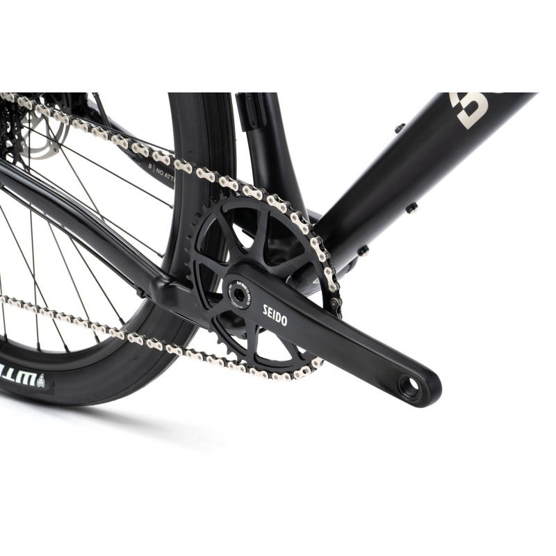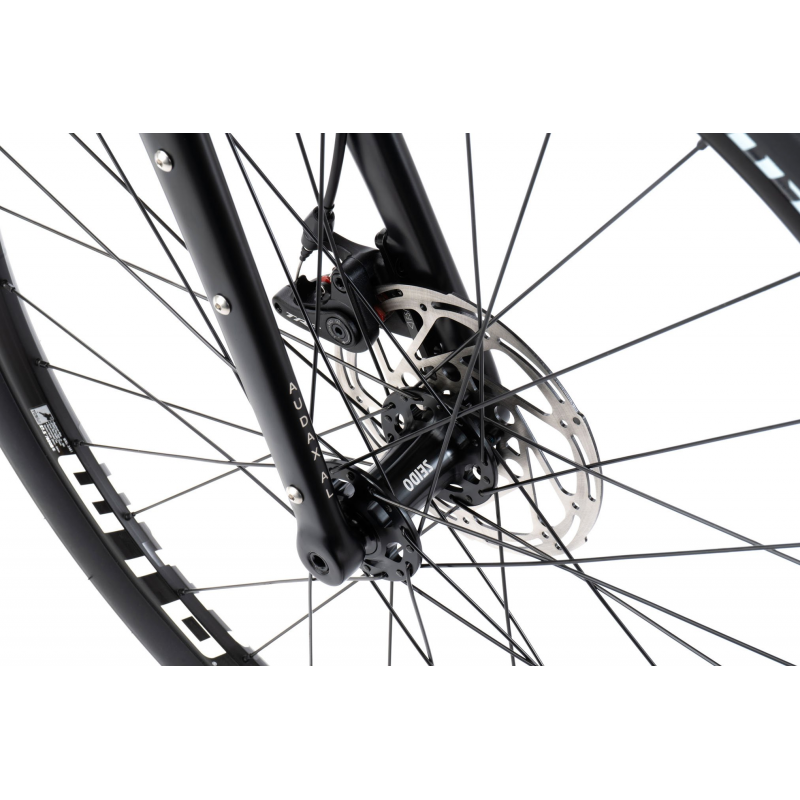 The Audax AL Sword in Matt Black is a clean, understated and versatile allroad bike designed for long-distance comfort and mixed-terrain capability. The 6061-T6 aluminium frame delivers a balanced ride — light yet solid — while the full-carbon fork offers compliance and multiple mounting points for bags, racks and accessories.