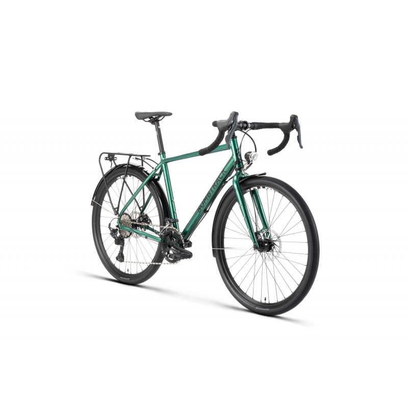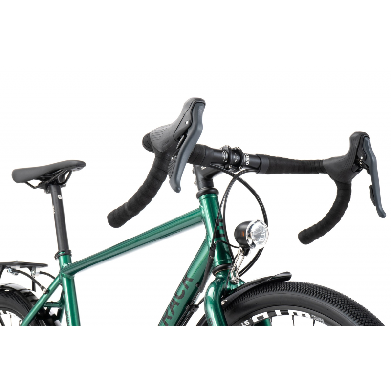 The Munroe SG Commuter is the fully equipped take on the Munroe platform: a 6061-T6 aluminium frame and fork with rack, cage and fender mounts, a wide-range Microshift Sword 2x10 drivetrain and integrated lighting powered by a dynamo hub. It’s a drop bar commuter designed to handle daily rides to work, grocery runs and weekend detours with the speed of a road bike and the practicality of an everyday utility machine.