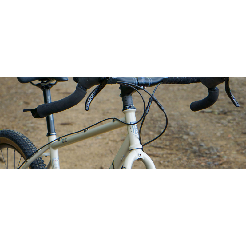Cable routing is external with continuous housing, chosen for reliability and ease of maintenance when traveling.