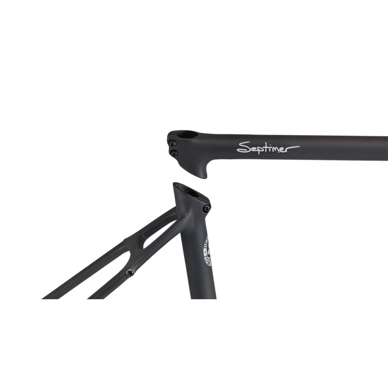 The Ritchey Break-Away Septimer is a carbon frameset engineered for road travel and gravel expeditions, featuring the patented Break-Away® system that allows the frame to split into two sections for convenient transport, while retaining ride characteristics once reassembled. It’s a functional platform designed for 1x or 2x drivetrains, wide tyre clearance, mounts for bags, racks and fenders, and a purpose-built carbon fork with load-ready features.