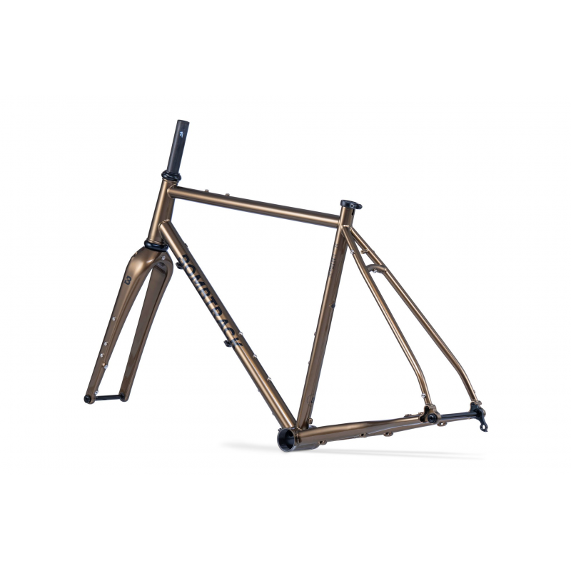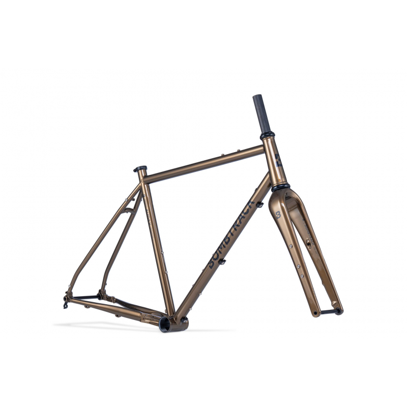 Il Bombtrack Audax Frameset Metallic Dark Brown è un frameset in acciaio pensato per l’all-road veloce, i lunghi chilometraggi e il viaggio leggero. Un telaio snello in Columbus Cromor, una forcella in carbonio e una dotazione di attacchi completa lo rendono una base ideale per una bici “da strada reale”: asfalto, strade secondarie, strade bianche e sterrati leggeri, con la possibilità di aggiungere parafanghi e bagaglio.