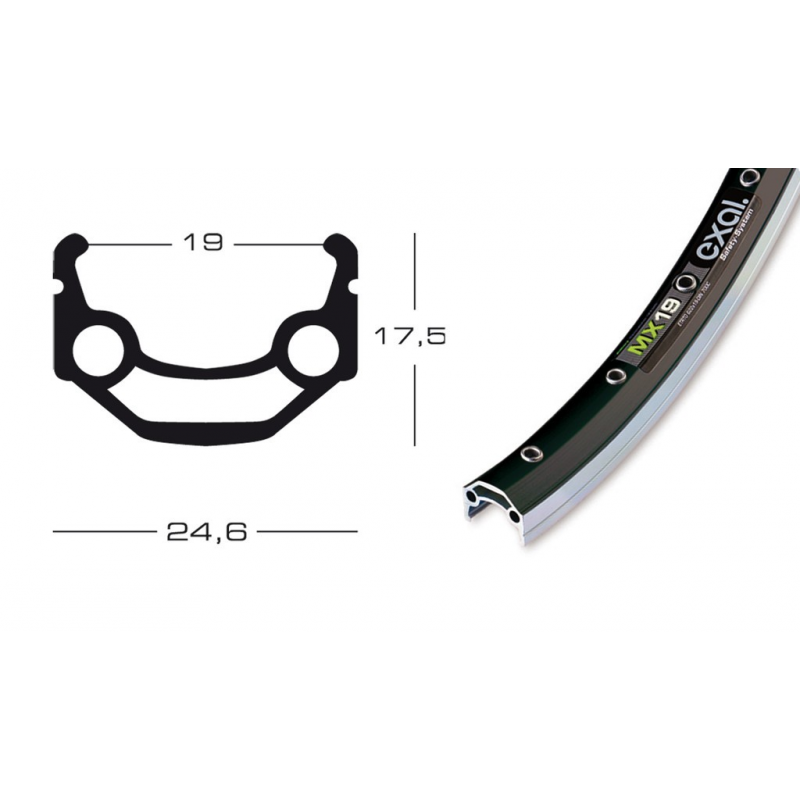 cerchione Exal ZX 19 28" col.arg.. 622-19,buco p.val. 8,5mm,36 buchi,c.occ.
