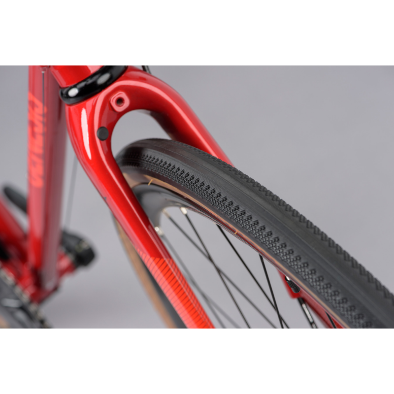 L’adozione di pneumatici 700×32 mm consente un livello di comfort superiore rispetto a una bici road tradizionale, ampliando il campo di utilizzo verso green lanes, sterrati leggeri e superfici sconnesse.