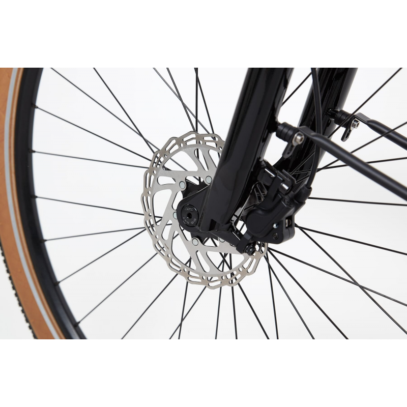 Il telaio in alluminio ospita una batteria integrata da 500 Wh e adotta passaggi cavi interni, mentre le ruote da 29” con pneumatici di sezione generosa contribuiscono a stabilità e comfort su superfici diverse.