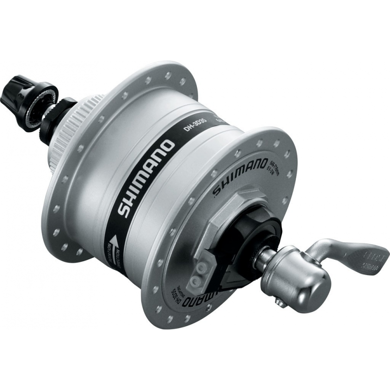 SHIMANO Mozzo dinamo DH-3D37, potenza 3W, 100mm, 36 fori, colre silver, Centerlock, QR. Senza protezione contro i sovraccarichi di tensione